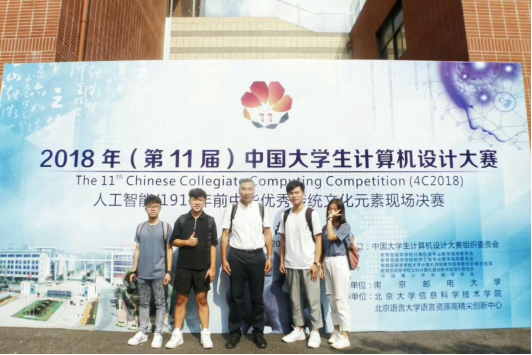 8月1日至8月5日由魏东华老师带队郑伟国、黎国豪、瞿文政3组队伍前往南京参加中国大学生计算机设计大赛人工智能及1911年前中国优秀传统文化元素现场决赛,其中郑伟国组获全国二等奖,黎国豪、瞿文政组获三等奖。