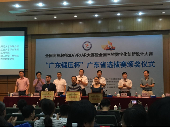 9月22日,全国三维数字化创新设计大赛暨全国高校教师教学创新大赛3D/VR/AR数字化虚拟仿真主题赛项(简称:3D大赛)广东赛区选拔赛及颁奖典礼在华南理工大学顺利举行。本次大赛入围省赛评审的队伍共140支,现场参与答辩队伍共90个团队,其中中山大学新华学院信息科学学院(以下简称“信科学院”)数字媒体技术专业共有7支队伍入围决赛。经过一番激烈的角逐,我校“得塔队”在众多院校中脱颖而出荣获3D大赛特等奖,我校参赛队伍共获得特等奖1项,一等奖1项,二等奖2项,三等奖3项。此外,我校还获得了优秀组织奖。
