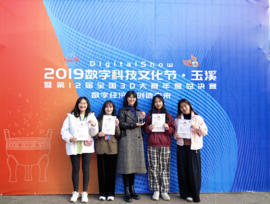 在第12届全国3D大赛中,我校得塔团队与中国地质大学、北京邮电大学、华中科技大学等985、211高校同台竞技,最终经组委会组织专家,复评多轮评审,我校学生黄怡婷、陆合彩、梁漪晴、赖麒朱的参赛作品《西湖羁绊》荣获全国3D大赛广东赛区特等奖(指导老师赖剑煌教授和朱荣老师),同时获得全国总决赛二等奖。