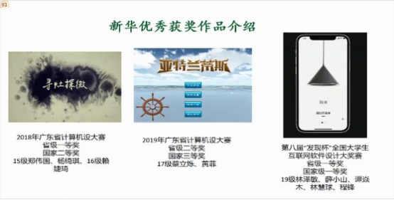 刘珍丹老师从影视、游戏开发、交互设计、人工智能、增强现实、信息可视化等选取了新华优秀获奖作品和2019年广东省计算机设计大赛官方游戏案例。对每个作品案例,设计要点、制作规范等方面做了详细的解说。