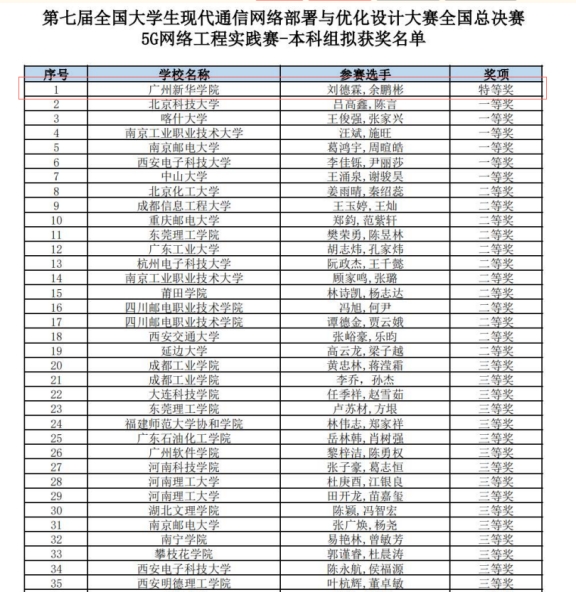 第七届全国大学生现代通信网络部署与优化设计大赛全国总决赛获奖名单