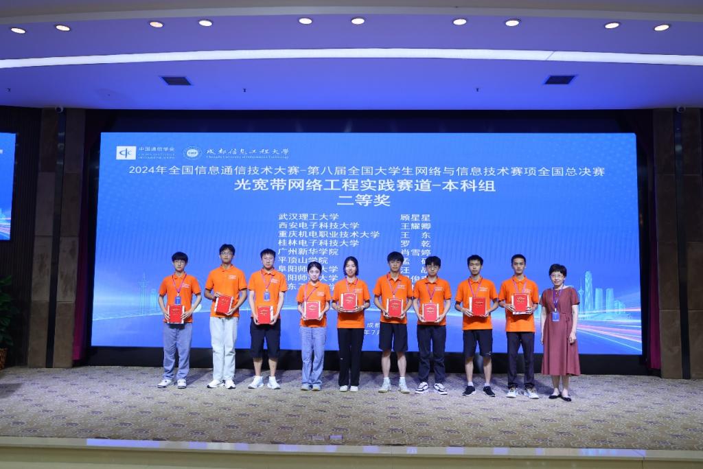 2024年全国信息技术大赛——第八届全国大学生网络与信息技术大赛全国总决赛于7月21日在成都信息工程大学落下帷幕。作为目前信息通信领域最具影响力的大学生竞赛之一,赛事共设三大赛道,分别是5G网络工程实践赛、光宽带网络工程实践赛以及开源鸿蒙原生应用设计赛。本次大赛吸引了来自全国500多所高等院校的上万名学生参赛,经过激烈角逐,广州新华学院太阳集团tyc138学子斩获国赛一等奖1项、二等奖1项、三等奖2项,管理学院学子斩获国赛二等奖1项。指导老师为信息与智能工程学院梁立容老师和吴筠老师。