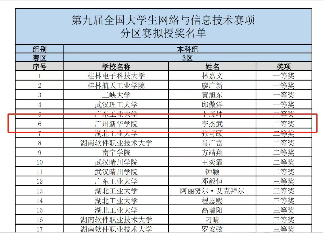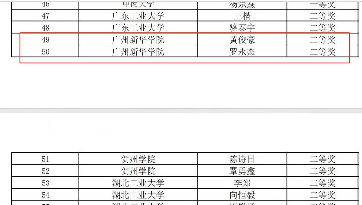 省赛赛道二我校学子获奖名单