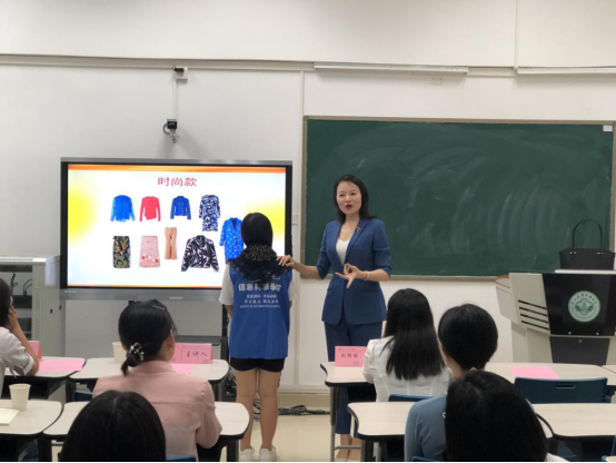 刘玲老师以习近平总书记及夫人在正式场合的衣着搭配为例,强调了着装颜色搭配中最讲究的“呼应”,也是一种浪漫、一种爱。 她讲到,职业着装搭配要坚持整体端庄大方的大原则和局部小点缀的“锦上添花”,刘玲老师拿出她自带的外套、衬衣展示出不同的搭配,让老师们现场学到了搭配技巧。