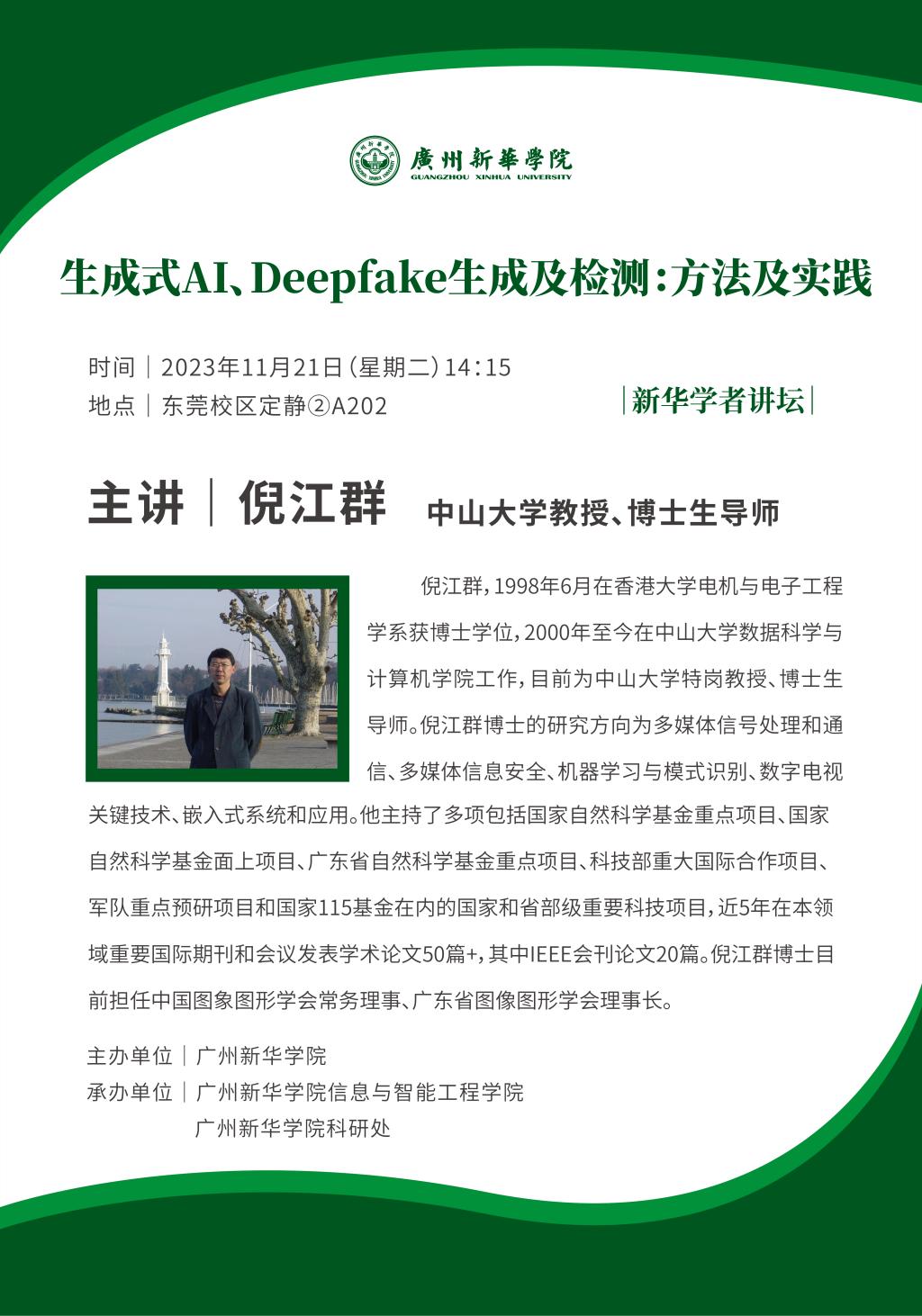 【学者讲坛】倪江群:生成式AI、Deepfake生成及检测:方法及实践