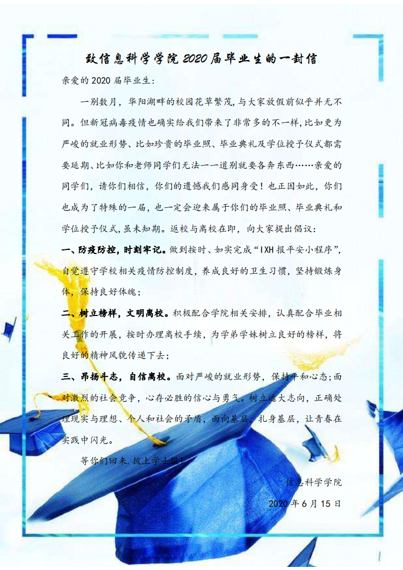 致信息科学学院2020届毕业生的一封信