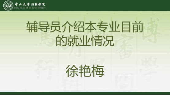然后班主任罗漪澜老师给同学们在找工作时提出几点建议:一是要坚定就业的信心,面对困难和压力时不放弃。二是珍惜两年的择业期,抓住就业的最佳时机,不要让父母操心。三是通过多种途径去找工作,多投简历,广撒网多尝试,专业不对口的工作也可以去投递简历。四是在撰写简历的时候要突出自己的优点优势,扬长避短,切忌华丽的言语,尽可能地客观。