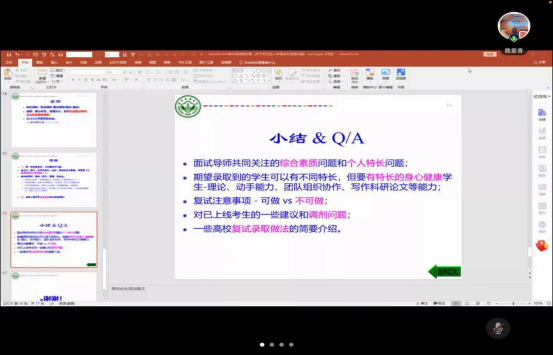 最后,魏爱香教授为刘星成教授的分享做了补充,她从自身角度出发讲解了复试面试的中的一些问题。