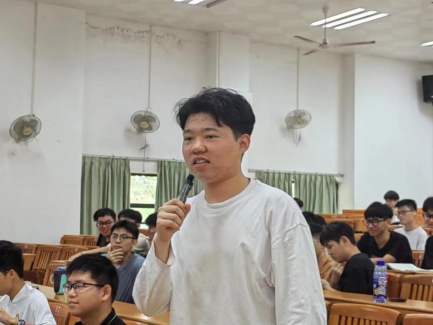 接下来分享的是全国大学生智能车竞赛华南赛区二等奖车组组长、全国大学生智能车竞赛学生助教廖树恒学长,他向同学们讲解了专业的基本知识和竞赛的重要性,并向同学们推荐了适合专业的竞赛项目和申报流程。他鼓励同学们多多参与,提升自己的科研能力。