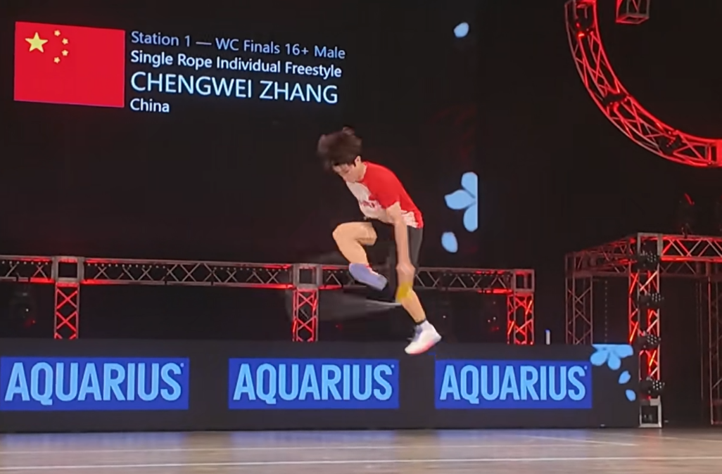 赛场上,张城玮全情投入,每一次跳跃、每一个转身都精准流畅,将跳绳的速度、力量与艺术美感完美融合,动作与音乐节奏严丝合缝,让现场观众和裁判深深折服。最终,凭借无可挑剔的表现,他斩获桂冠,用实力书写荣耀篇章。
