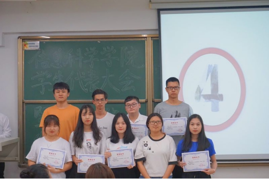 为表彰信息科学学院第十一届学生会成员的辛勤付出,由信科院学生会第十届主席詹睿婕及第十一届主席许泽铭为我院学生会第十一届优秀干部和优秀干事颁发荣誉证书。这不仅是对优秀干部过去一年里的工作表示了肯定,更是激励了信科院学生会其他成员向优秀干部学习。