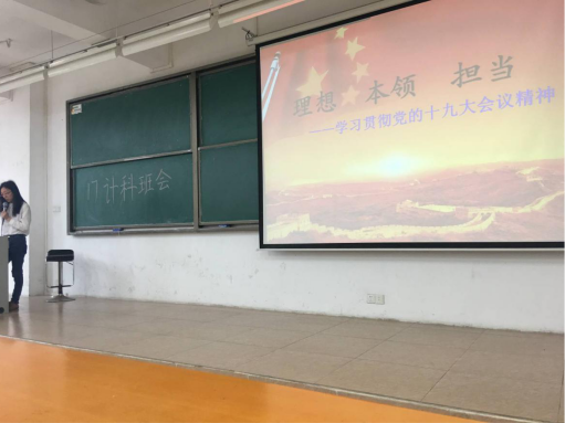 17级计算机科学与技术专业于2018年4月13日10:45在定静二A302开展了关于党的十九大主题班会。出席班会的有:17级计科班主任老师曹汉华,17级计科辅导员周袁弘一以及17级计科全体学生。