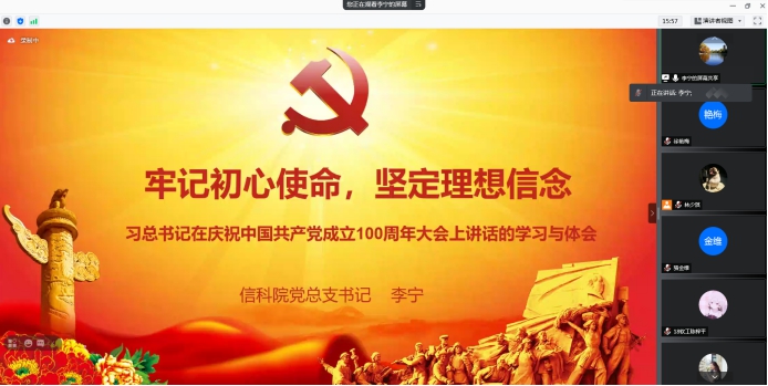 2021年8月14日,为全力抓好学习宣传贯彻习近平总书记“七一”重要讲话精神,持续做好党史学习教育,信息科学学院党总支通过腾讯会议召开“以史为鉴、开创未来”党史学习教育大会。本次会议由信息科学学院党总支副书记林少淇老师主持,李宁书记及全体教职工党员、学生党员参与。