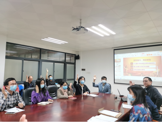 本次会议的第三个议题是教工党支部讨论发展对象邹嘉俊同志转预备党员事项。会议由支部书记何忠礼主持。首先,邹嘉俊同志向大会宣读入党志愿书,分别从思想、工作、学习及生活等方面汇报了个人在培养期间的表现,做到了严格用党员标准要求自己。接着,组织委员陈诗源老师对发展对象进行政审状况介绍。随后,入党介绍人丁阳、黄雪敏老师分别介绍了邹嘉俊同志在培养期间的综合表现情况,认为其基本具备了党员条件,并同意其转为预备党员。经与会教师党员同志充分讨论后,全体教师党员(不含预备期党员)进行无记名投票表决,全票通过邹嘉俊同志按期转为预备党员,并由何忠礼书记带领其进行新党员入党宣誓。