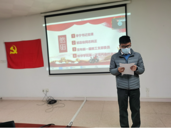 本次会议的第二个议题是讨论邹嘉俊同志预备党员转为正式党员。首先,由预备党员邹嘉俊同志宣读转正申请,总结汇报了预备期间的表现、思想认识、理论学习、参加党组织活动情况等。随后,入党介绍人黄雪敏、丁阳同志介绍对预备党员邹嘉俊同志的培养情况并对其能否转正表明意见,两位介绍人认为,该同志已基本具备党员标准,同意按期转正为中共正式党员。经与会教师党员同志充分讨论后,全体党员进行无记名投票表决,一致通过邹嘉俊同志转为中共正式党员。