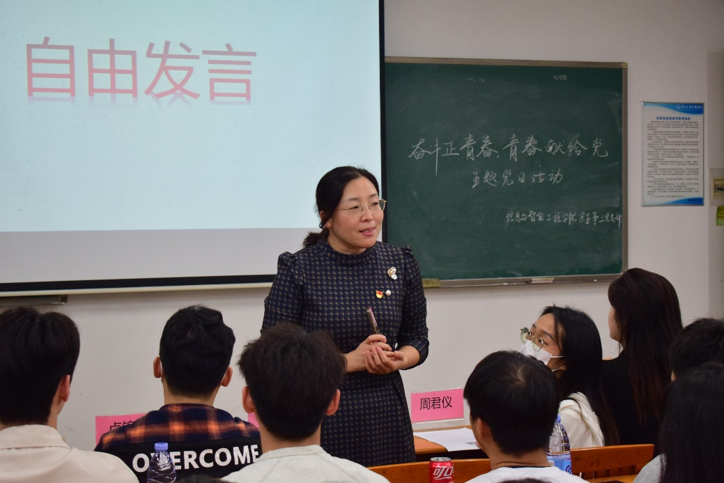 活动结束时,殷丹部长也对本支部党员发展提出了殷切希望,强调同志们演讲时要学会用精彩语句讲述能让人沉浸其中的完整故事来与听众产生共鸣从而引发深思、进而行动,鼓励全体党员通知要多读书多思考,用青春蓬勃力量助力中国发展、争做新时代中国好青年。