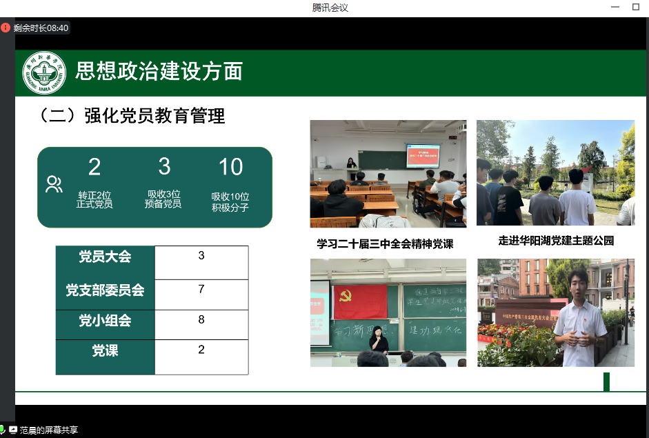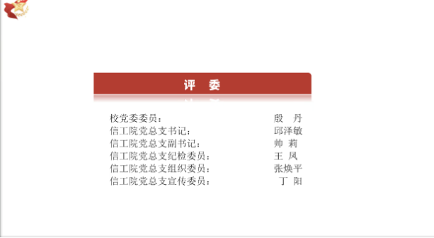 校党委委员、组织部部长殷丹对信工学院本次述职做了点评,她说,各党支部一年来都十分辛苦,发挥其党务干部的坚韧作用。