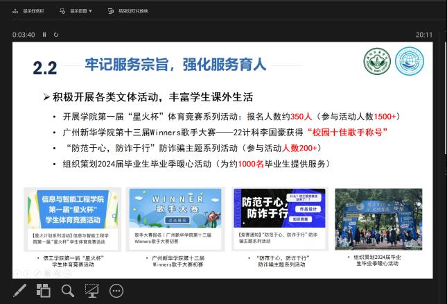 其次,邱书记感谢各党支部及团学组织一年来的辛勤与努力,从述职汇报中看到过去一年各个组织做了大量的工作,特别是团学组织依托丰富的学生活动,逐步在思想引领工作中取得成效。