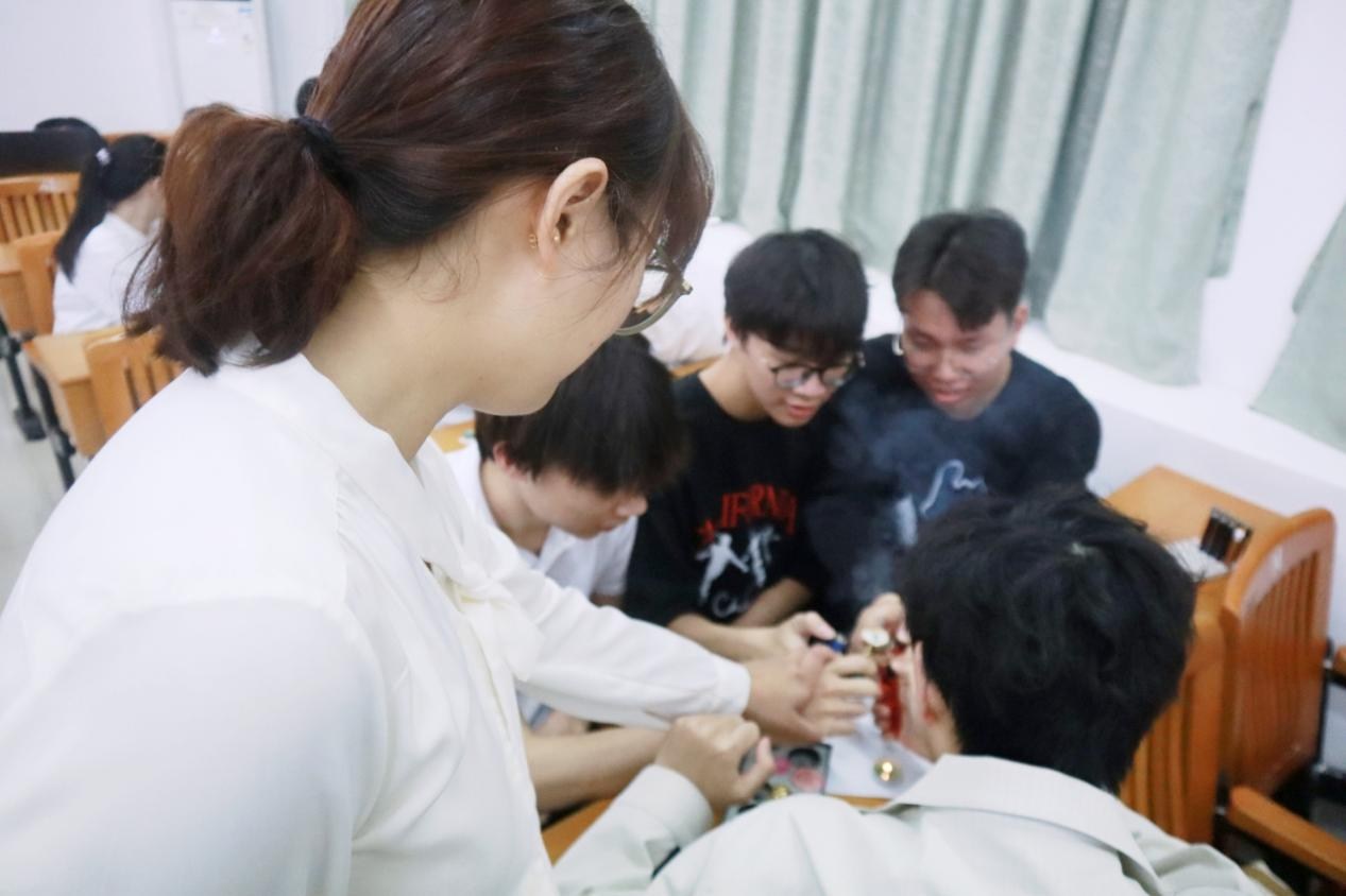吴嘉斓老师和同学们共同体验非遗文化