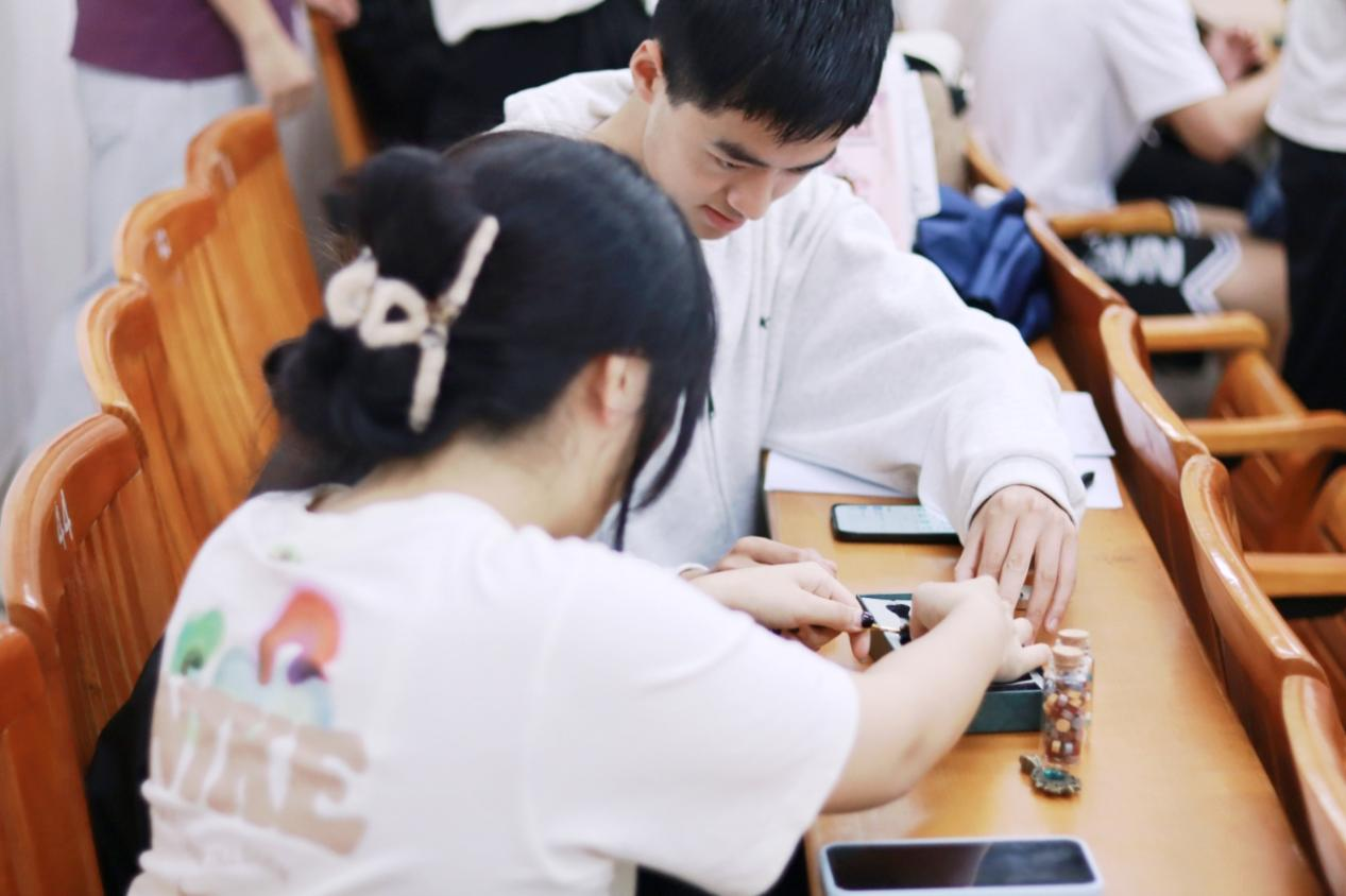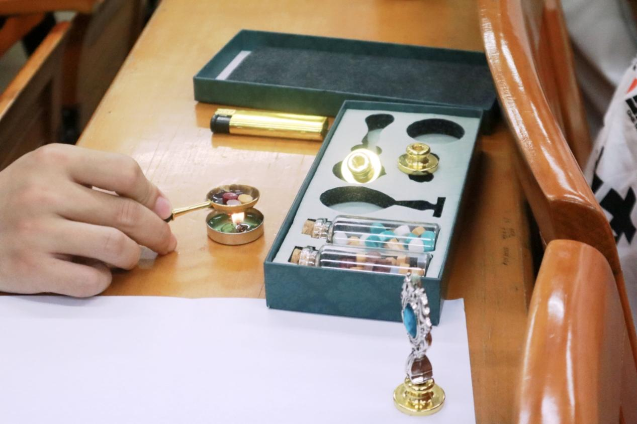 非物质文化遗产既是历史发展的见证,又是珍贵的、具有重要价值的文化资源,团委秘书部副部长南智皓同学以火漆工艺与造纸术为切入点,在“承非遗星火,燃青春炬光”主题团课中为同学们带来一场沉浸式非遗文化盛宴。课堂上,他介绍了非遗文化的定义和传承意义,并带领同学们一同体验火漆的制作体验,同学们亲手融化蜡粒、选择印章、按压成型,在袅袅香气与温热触感中,感受传统工艺的魅力也更激发了大家传承非遗、响应两会文化发展号召的热情,激励着同学们以实际行动为文化传承贡献力量 。