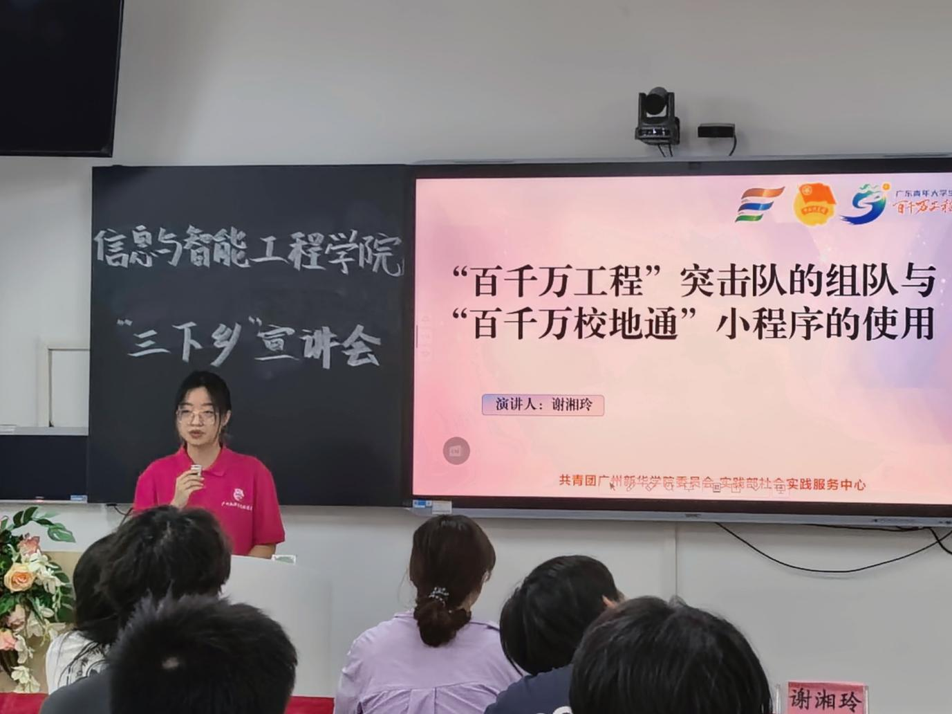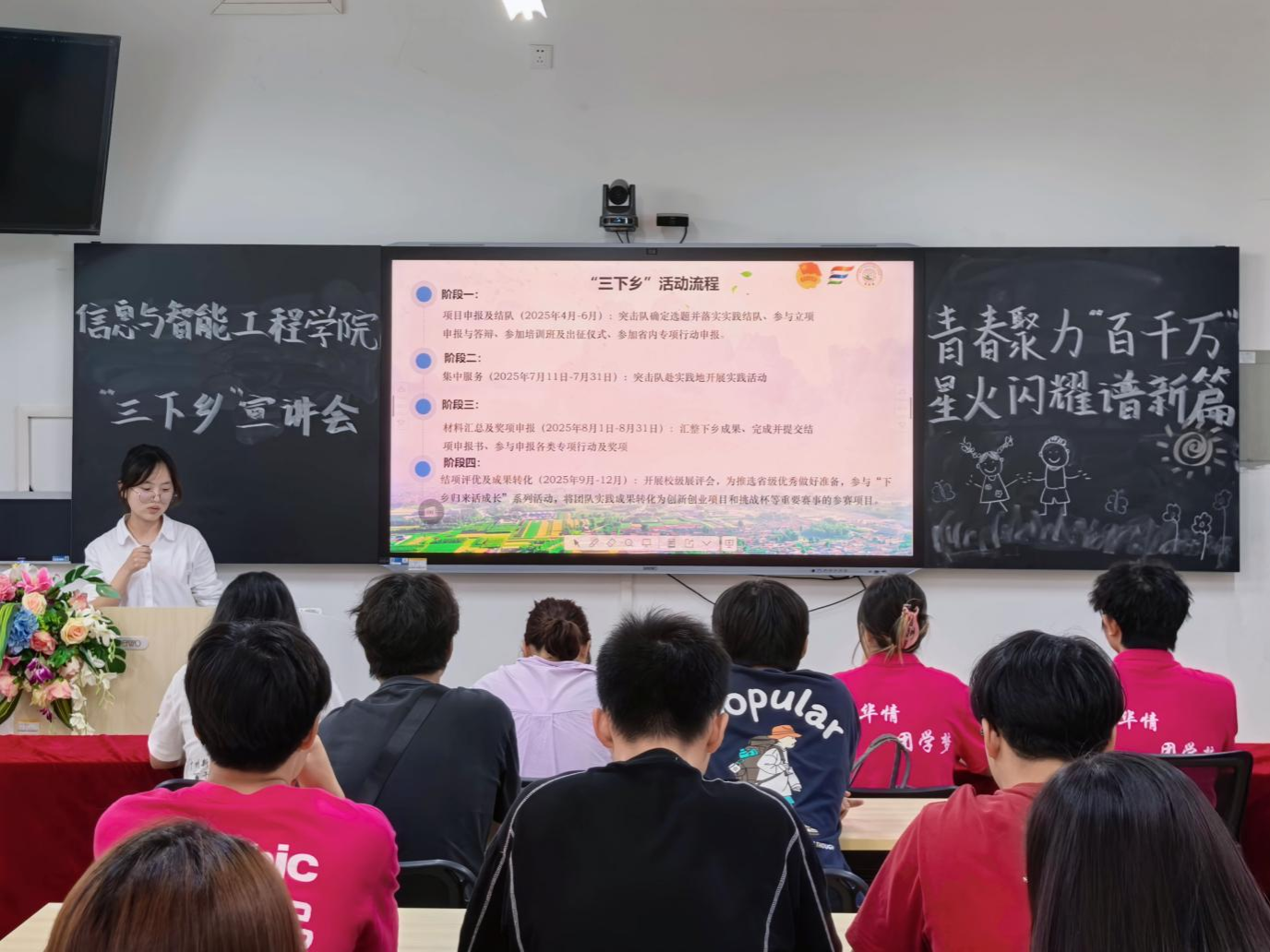 为深入贯彻党的二十大精神,落实习近平总书记关于青年工作的重要思想,响应广东省高质量发展大会战略部署,助力“百县千镇万村高质量发展工程”,引导青年学子深刻理解“三下乡”实践活动的内涵与价值,搭建经验交流平台,激励青年将课堂知识与乡村实践结合,厚植“三农”情怀,2025年4月11日19:00,太阳集团tyc138团委在格物4-210举办以“青春聚力‘百千万’,星火闪耀谱新篇”为主题的“百千万工程”突击队行动暨暑期“三下乡”社会实践活动宣讲会。