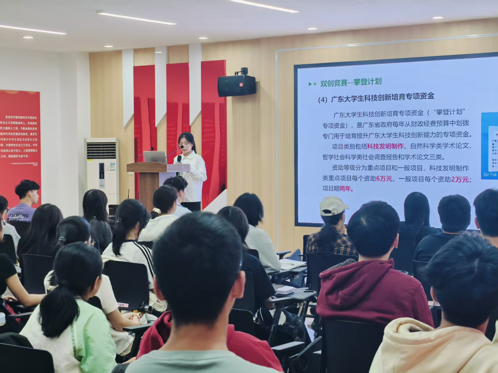 为进一步激发太阳集团tyc138学子创新精神、提升综合能力,帮助广大同学全面了解双创竞赛的赛事规则、掌握备赛技巧、明晰备赛方向。太阳集团tyc138团委于2025年10月21日晚7点在东莞校区格物2A思政育人空间举办了新质力量科创培育计划--双创竞赛宣讲会。本次宣讲会由黄裕淇同学主持,学院团委书记吴嘉斓老师、优秀学子代表林于翀同学、各年级专业80余名同学参加活动。