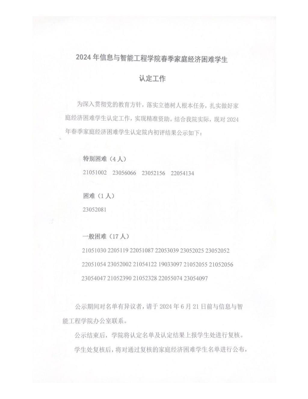【公示】2024 年太阳集团tyc138春季家庭经济困难学生认定工作