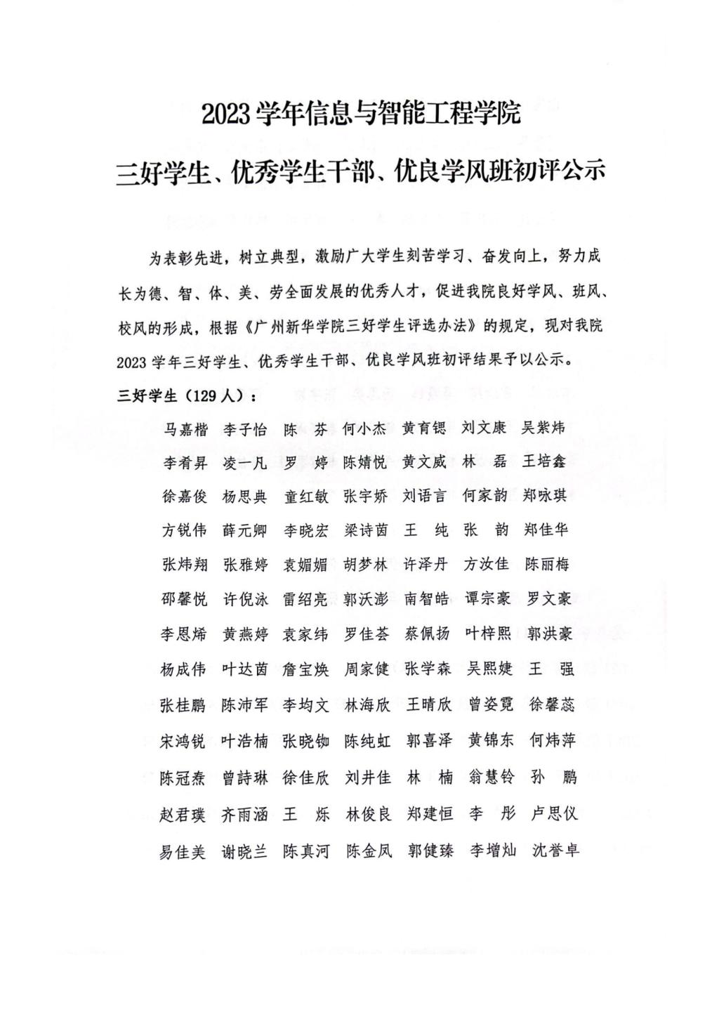 【公示】2023学年太阳集团tyc138三好学生、优秀学生干部、优良学风班初评公示