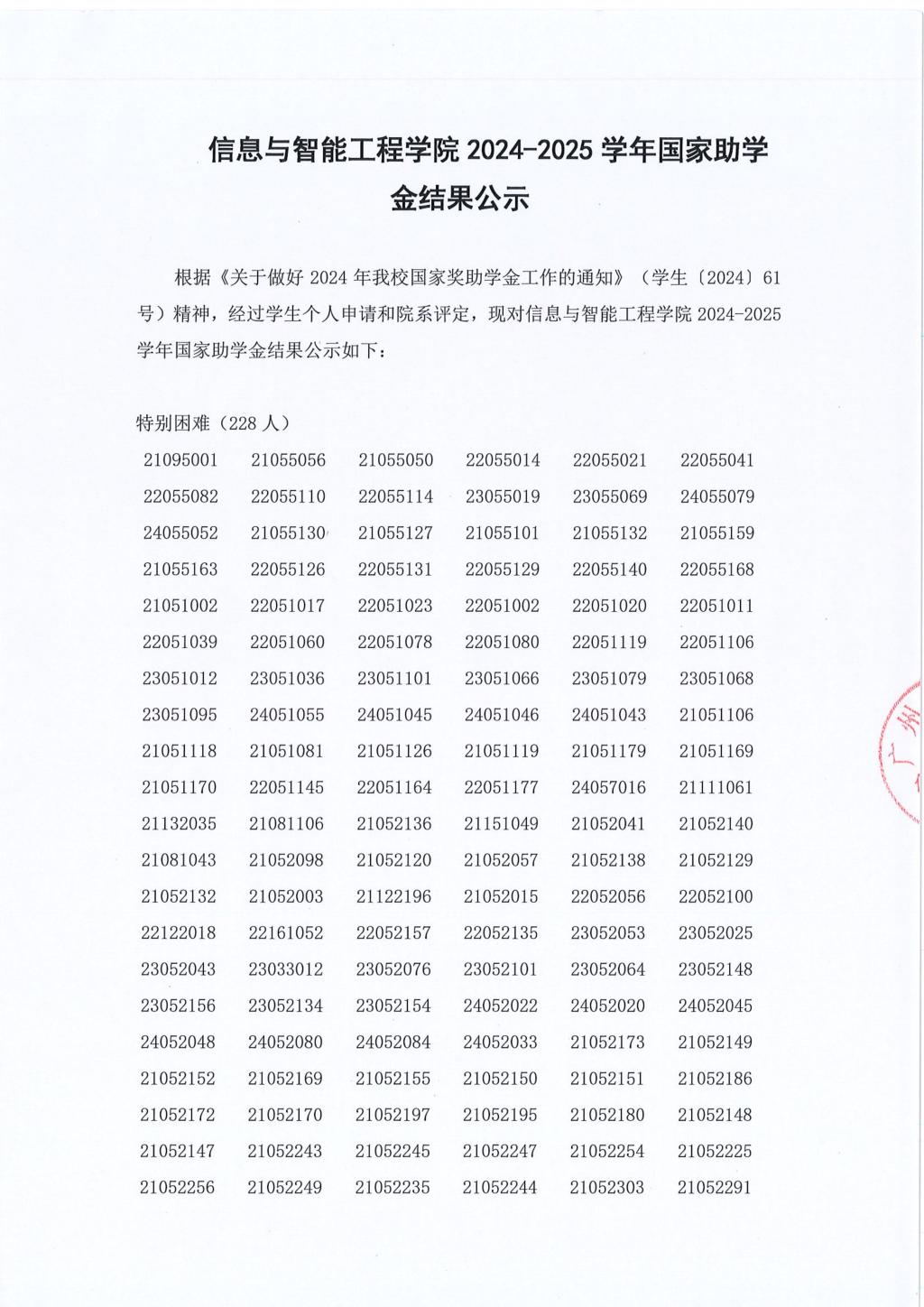 【公示】太阳集团tyc1382024-2025学年国家助学金结果公示
