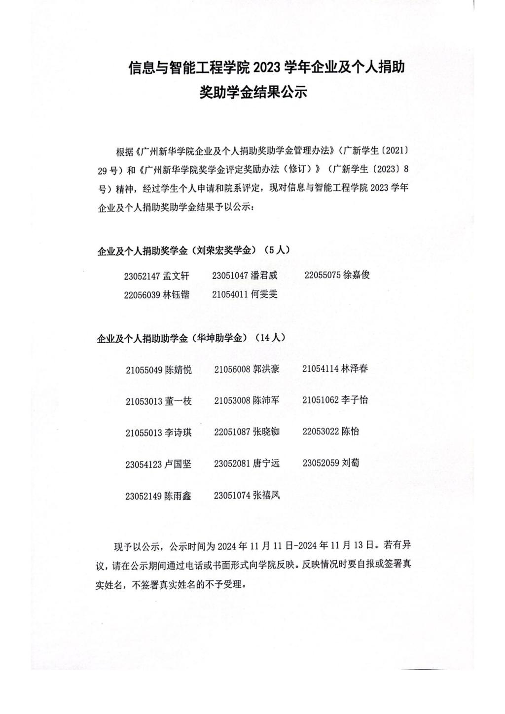 【公示】太阳集团tyc1382023学年企业及个人捐助奖助学金结果公示