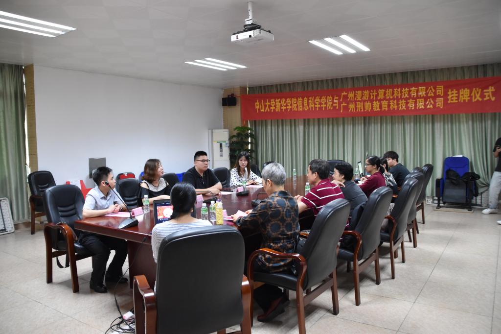 为了响应我校“开放办学”、“质量立校”、“特色兴校”的方针,进一步深化产教融合、校企合作,2019年4月30日信息科学学院与广州漫游计算机科技有限公司、广州邢帅教育科技有限公司的校企合作挂牌仪式在东莞校区格物楼2A102举行。