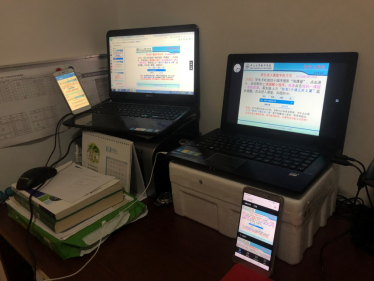 刘华章老师在开课前10分钟进行开课准备,检查上课设备,开启授课平台,让学生提早签到进入课堂。首次直播要告知进入直播课堂准确操作方法,推送资料内容方式,网上签到方式,调查学生意向(含上网方式、直播时长、课堂笔记、答题类型、答题数量、课外学习平台、课外学习时间、预习方式、预习素材等等)。学生反馈问题最多的是网络卡顿,时延严重,老师讲的PPT内容过一段时间才收到,为此,刘华章老师首先从自身找原因,解决自身问题,即以学生身份另增加一台笔记本和手机进入课堂,监测网络时延问题,当监听监看PPT正常了,再继续进行网上直播,有效解决了时延问题。
