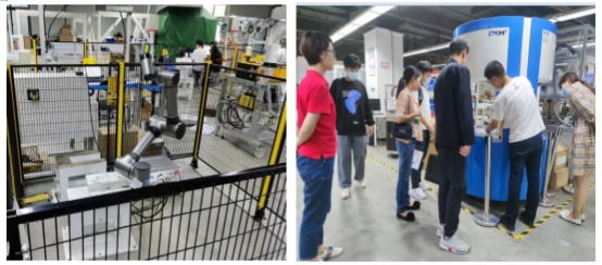该公司负责人带领我校师生参观了机器人产品车间,深入了解他们的智能制造与自动化生产线。