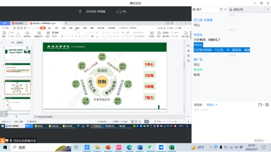 为更好的凝练人才培养特色,做好教育教学宣传,自动化系于2023年3月7日晚召开了人才培养特色专题研讨会,信工院王凤副院长、邱泽敏院长助理、邹恩教授、魏爱香教授、自动化系主任何忠礼老师、副主任罗漪澜老师及自动化全体教师参会讨论。