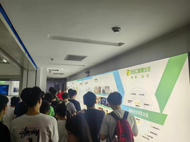 在360数字安全集团深圳分公司,学院师生们沉浸式地参观了企业生产经营工作环境和展厅,深入了解了360数字安全集团在网络安全领域的先进技术和丰富成果。现代化的办公环境、严谨的工作氛围以及前沿的技术展示,都给师生们留下了深刻的印象。