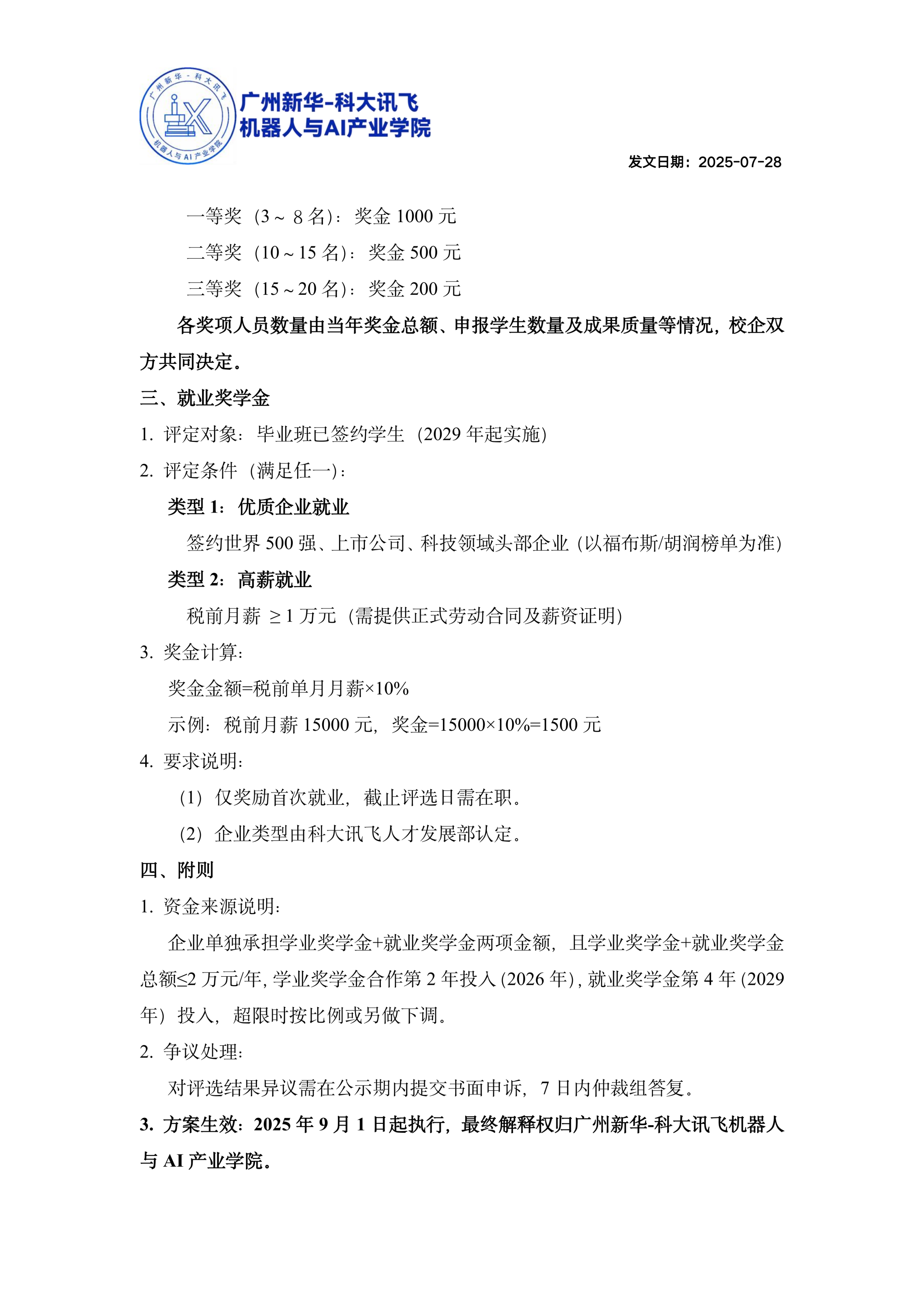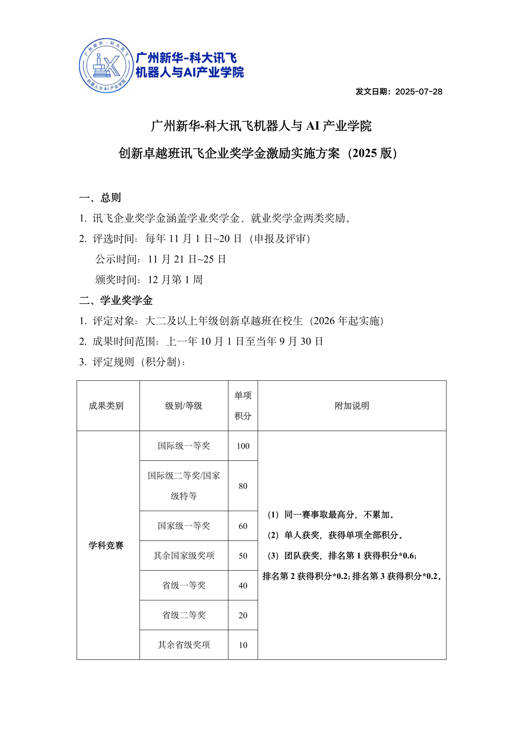 广州新华-科大讯飞机器人与AI产业学院创新卓越班讯飞企业奖学金激励实施方案(2025版).pdf